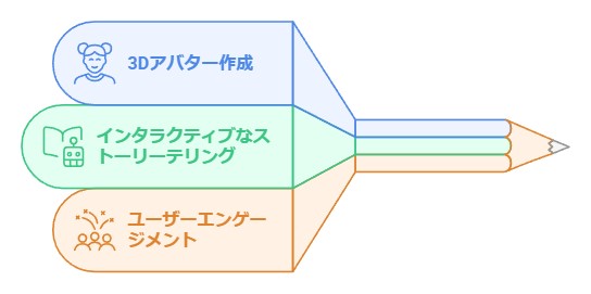 えほんインクは、ユーザーが自分や大切な人の3Dアバターを作り、それを絵本の主人公として登場させるという画期的なサービスを提供しています。これはただの絵本ではなく、あなたの物語を形にする魔法のような体験です。絵本の世界に「入る」なんて、子供だけでなく大人にとっても夢のような体験ですよね。